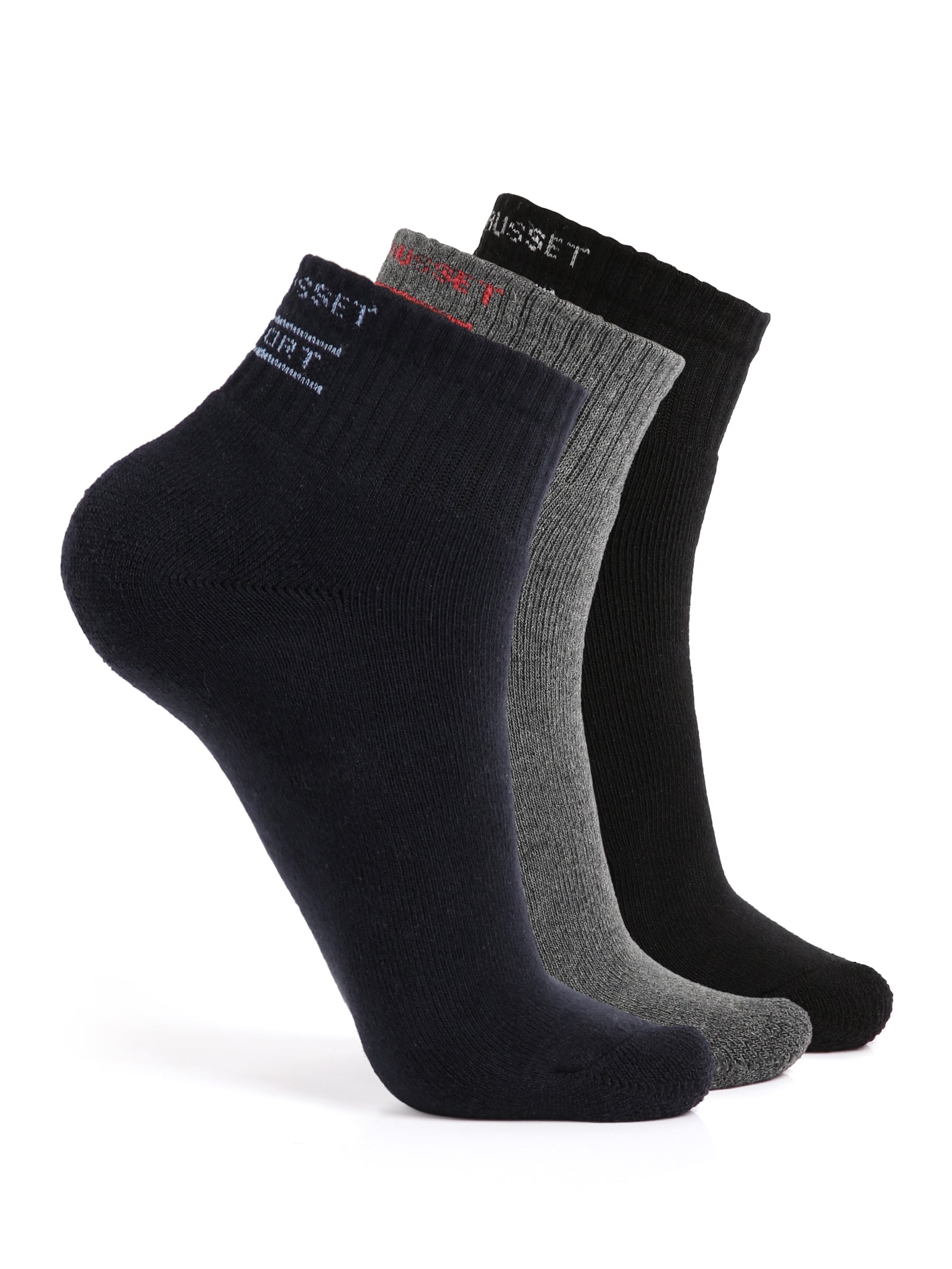 Experience superior comfort and performance with the Crusset Men's Ankle Length Sports Socks Pack of 3. Crafted with a premium cotton blend, these socks are ultrasoft, quick-absorbing, and feature 4-way stretch technology to provide an optimal fit that moves with your body. Whether you're hitting the gym, going for a run, or simply wearing them for everyday use, these socks are designed to keep your feet dry, fresh, and comfortable all day long.